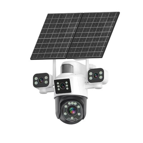 Hot Outdoor Beveiliging Laag Vermogen Een 4G 24 Uur Record Vier Lens 4 Schermen 360 ° View 8mp Ptz Aov Zonne-Camera