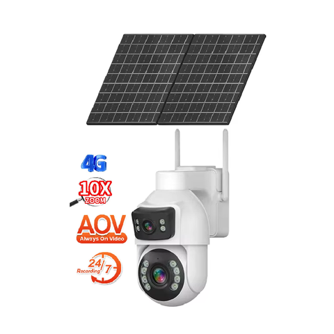 Beveiliging Draadloze Outdoor Aov Zonne-Camera 360 Ptz Buiten 4G Camera Dual Lens 10x Zoom Nachtzicht 2K Aov 4G Zonne-Camera